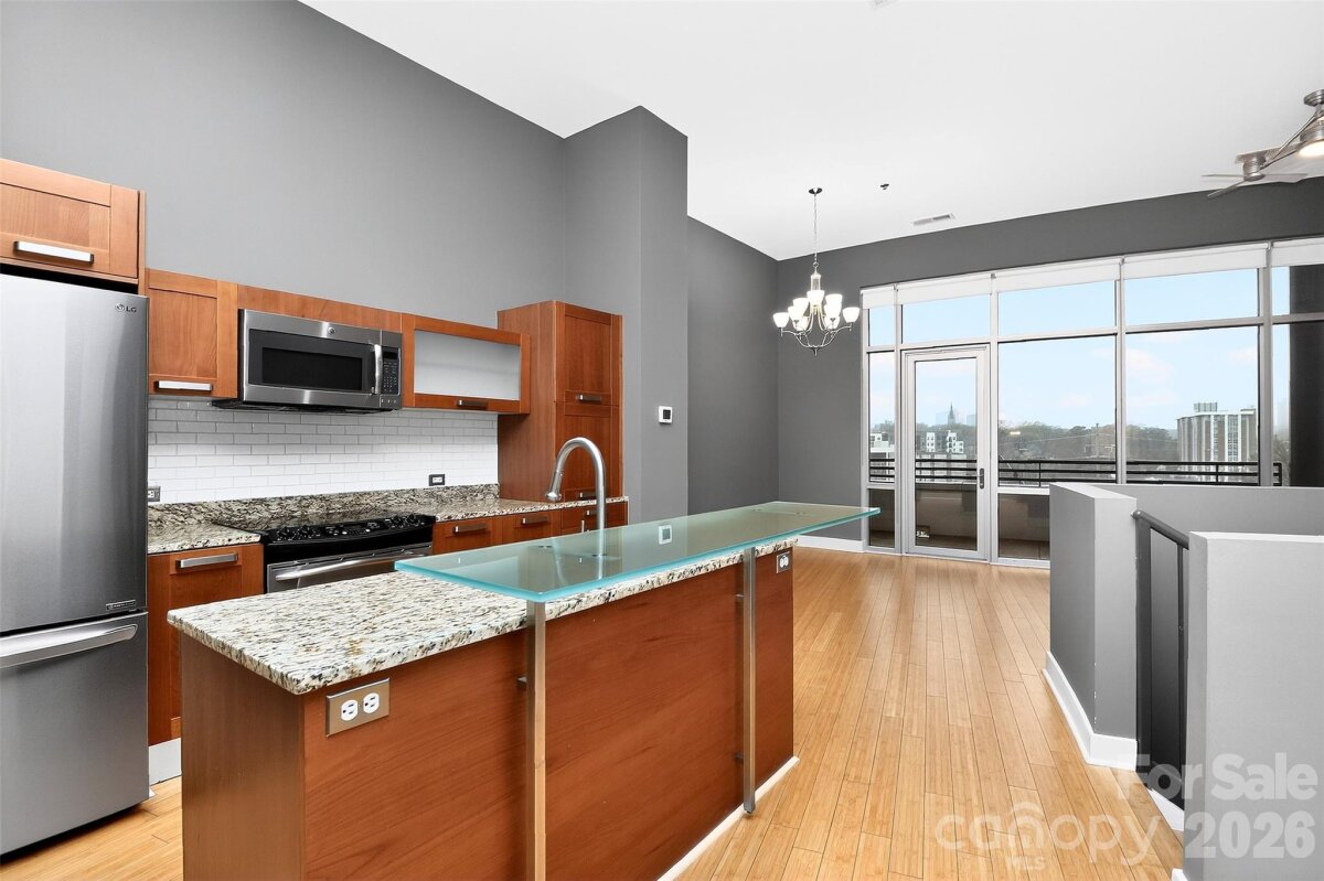Midtown Living at its best with a view of Uptown Charlotte. This 2 story condo in MetLofts offers you the experience of location, convenience of community shopping and restaurants as well as the nearby Sugar Creek Greenway. Interior high ceilings, floor to ceiling windows, and wood flooring; Kitchen host SS appliances, Pedini Cabintry, and Breakfast bar. Enjoy those city views from the Living/Dining area as well Primary Bedroom. This 1300 SqFt condo provides two primary bedrooms with large walk-in custom closets. Enjoy the access to great restaurants as well as retail attached and next to this secured building: Trader Joes, Best Buy, Burlington, Target... Amenties include: Rooftop Pool, Outdoor Kitchen, Fitness Center, Clubhouse, a deeded/assigned parking space on 4th level of garage and Tesla Charging stations on 6th level of garage.